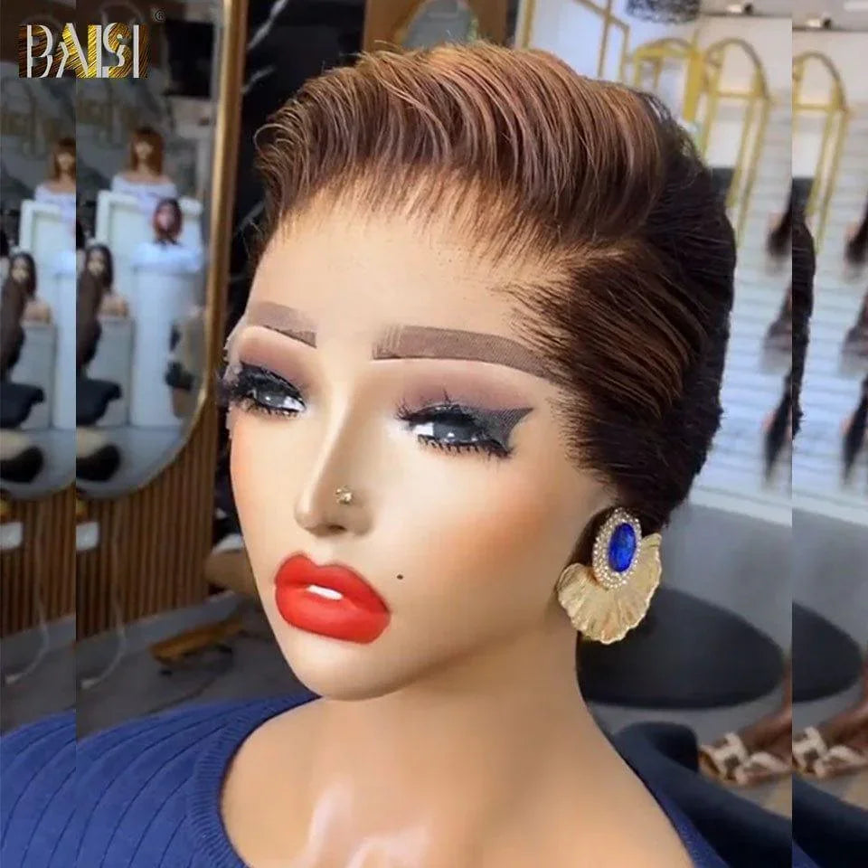BAISI Achetez 1 + 1 Gratuite = 160€ 2X6 lace bob Lisse et sans lace curly wave ou 13X4 Perruque pixie vague En Couleur Marron 69€ en 100% Cheveux Humains D