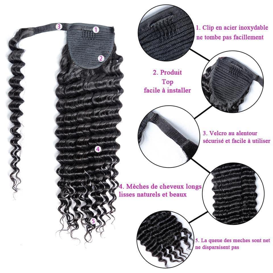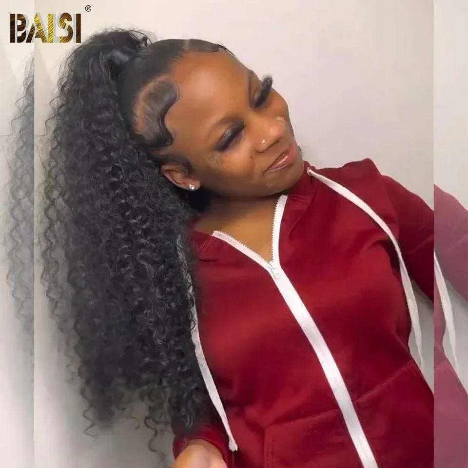 Rabo de cavalo ondulado profundo BAISI em cabelo 100% natural